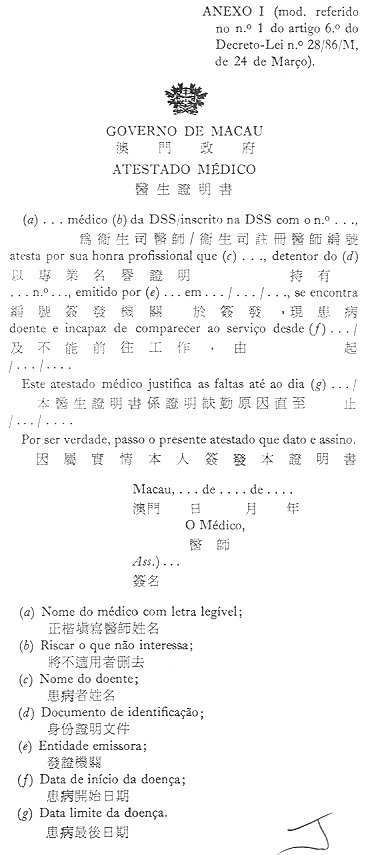 3. Sem prejuízo do disposto no número seguinte, o atestado, médico poderá ser passado por um médico da Direcção dos Serviços de Saúde ou nela inscrito.