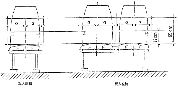 1)走廊:容許乘客由任一座位或任一排座位通往其他任一座位或任一排座位或工作車門之空間,視為走廊。走廊不包括每一座位或每一排座位前供坐着乘客雙腳使用之最長深度為30cm空間,亦不包括梯級及位於每一座位或每一排座位前專供佔用該座位乘客使用之空間;