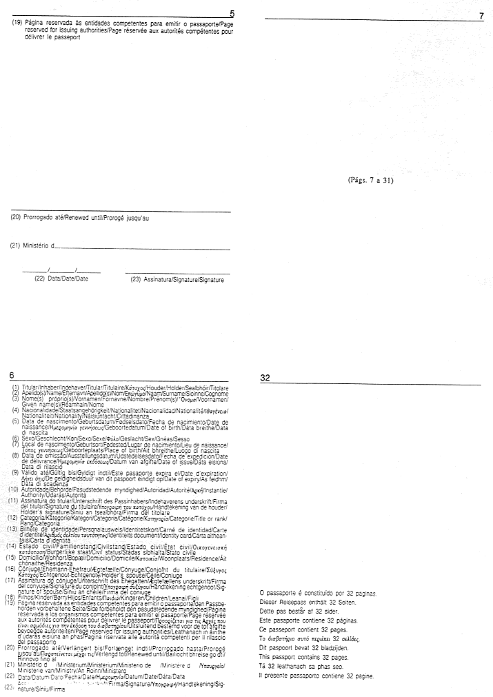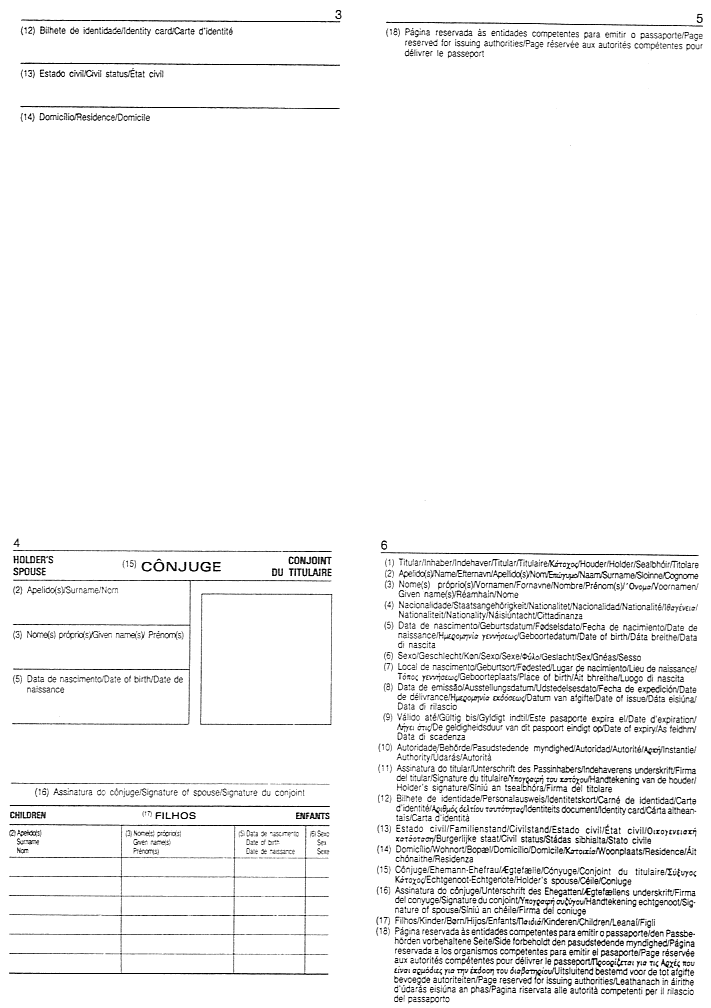 一、護照只在用以填寫之空格全被填寫或使空格不作使用之情況下方有效,且不允許以任何形式訂正或塗改。