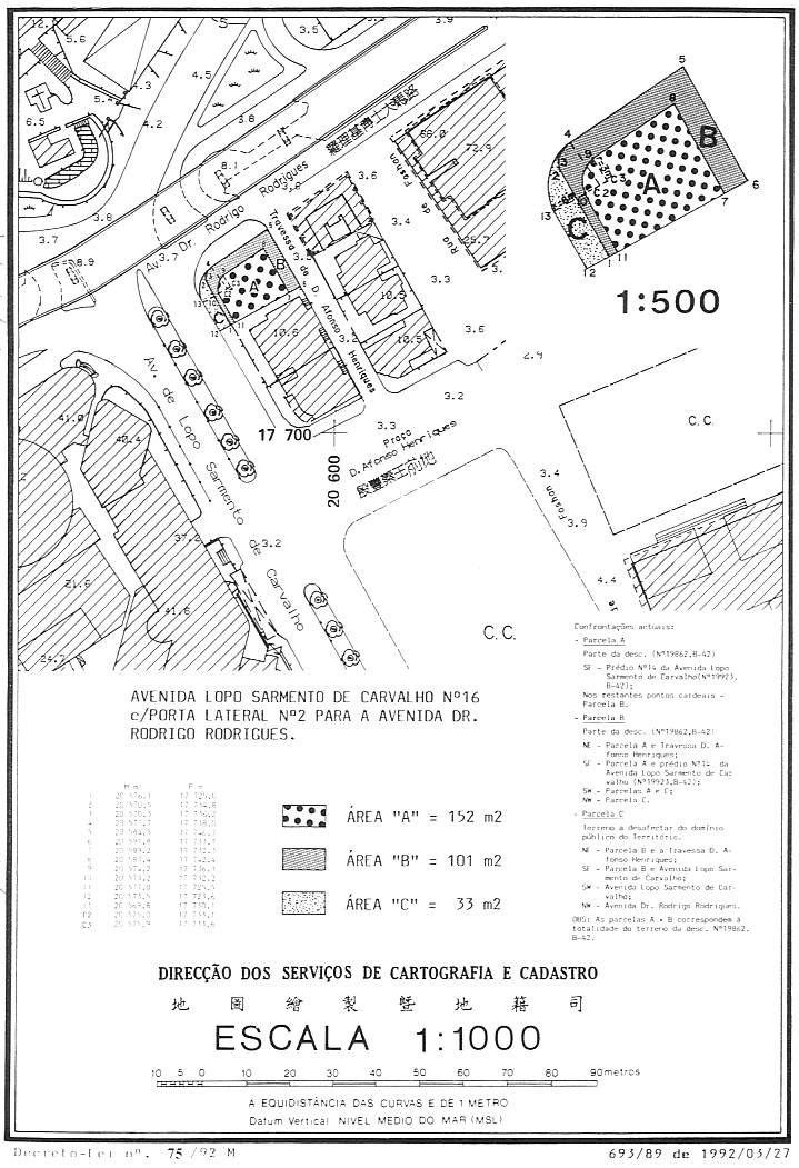 獨一條——根據七月五日第6/80/M號法律第四條之規定,解除總面積為33(三十三)平方米之地段之公產性質,且視作無主土地歸併為本地區之私產。該地段在地圖繪製暨地籍司於一九九二年三月二十七日所發出之第693/89號地籍圖內以字母“C”標明,而有關地籍圖附於本法規並成為其組成部分。
