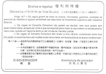 上述法規第十七條規定,委員有權使用本身之認別證,其式樣將由總督以批示核准。