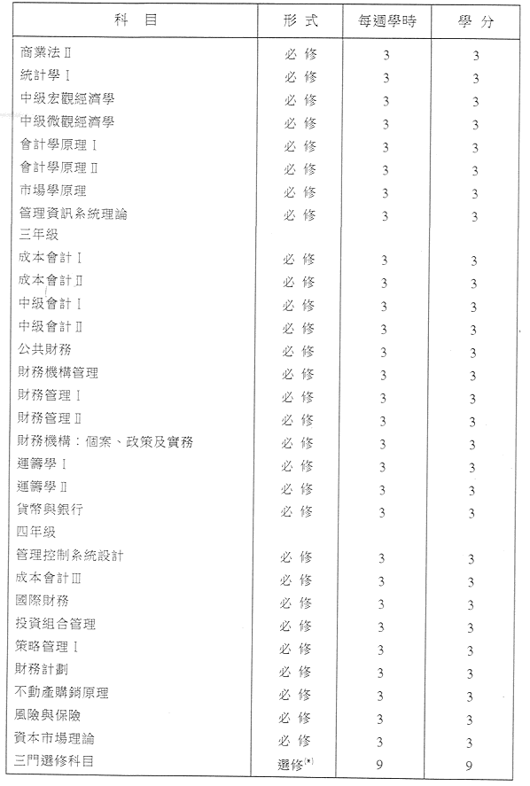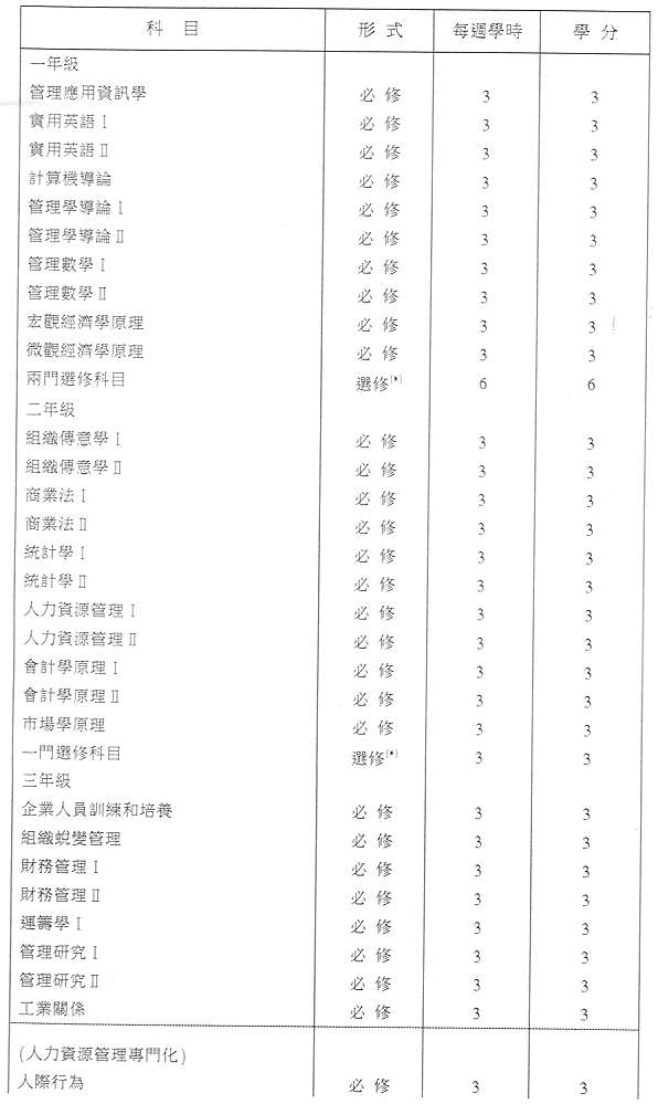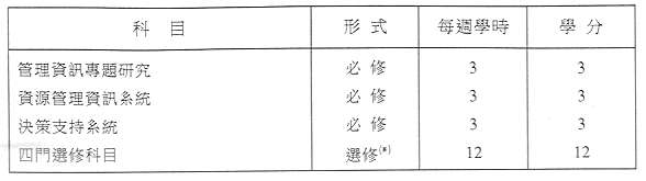 (*)進修科目由學生自工商管理學院院長指定的一套選修科目中選擇。