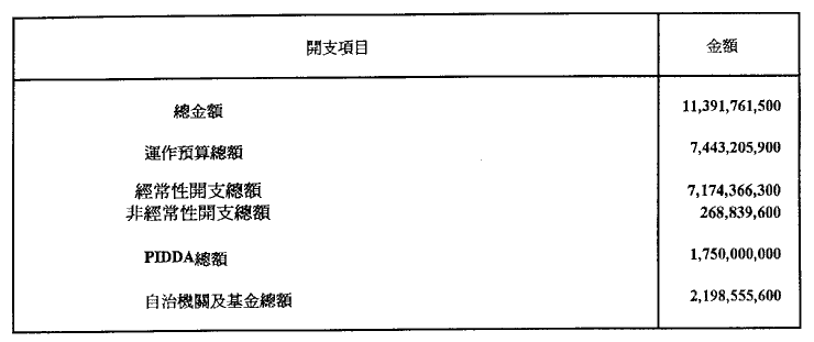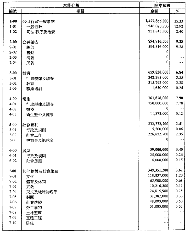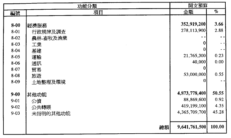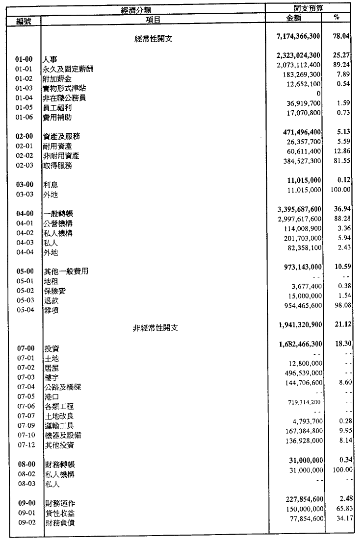 一九九五年經濟年度之預算開支總額定為澳門幣9,193,205,900.00。