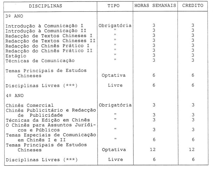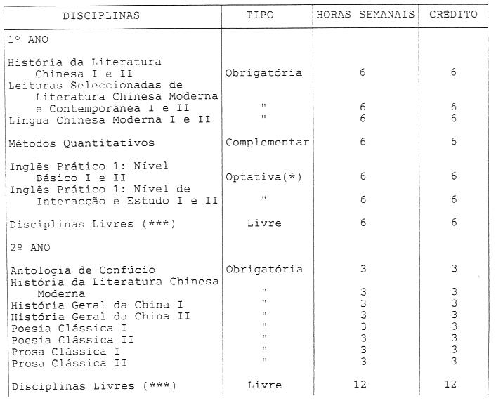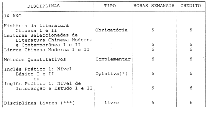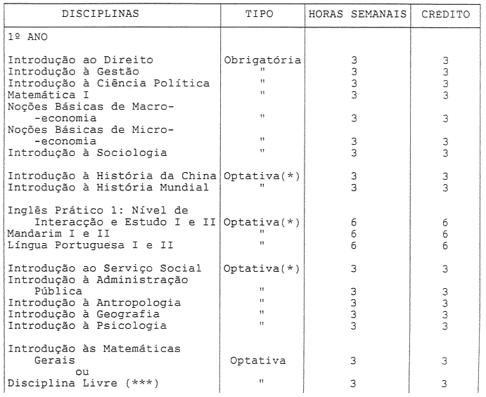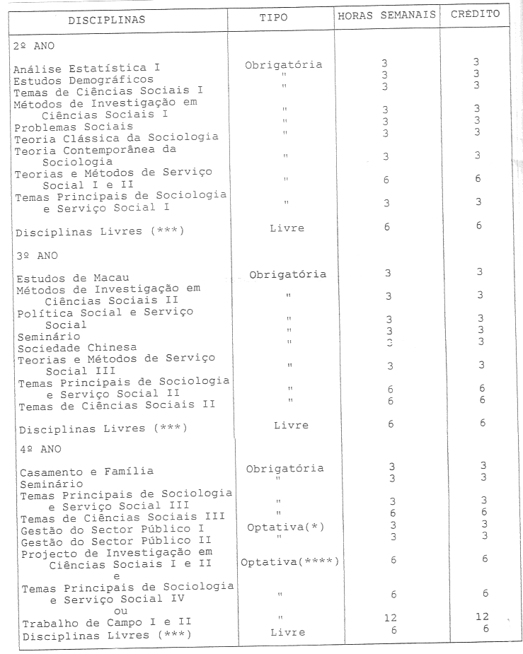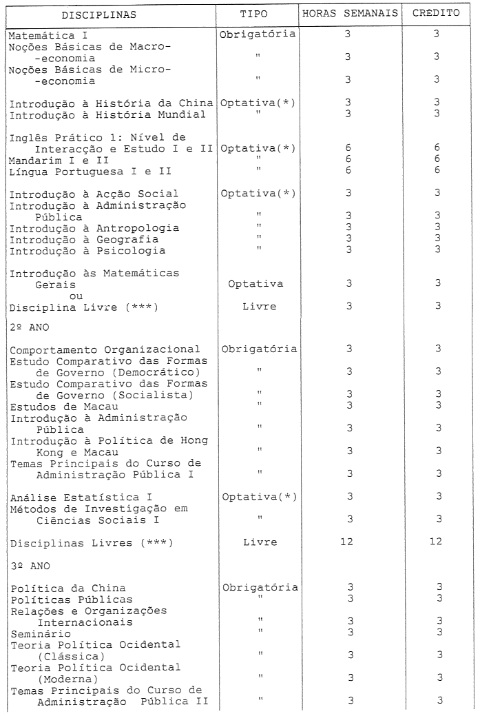 - (***) Disciplinas de qualquer curso da Universidade de Macau.