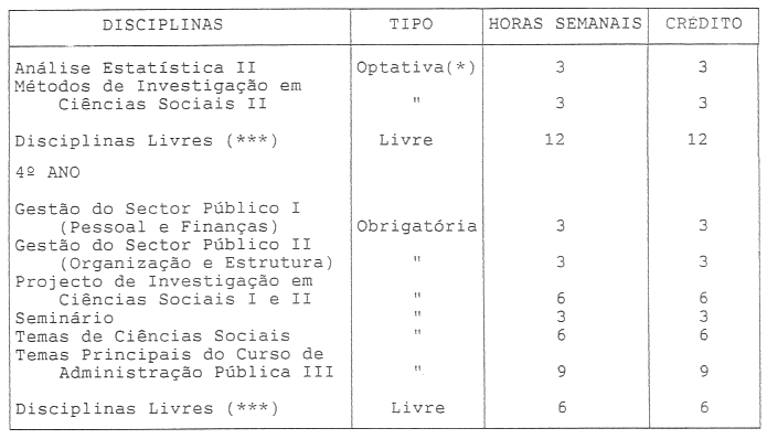 * Estes créditos podem sofrer ligeiras alterações, dependendo do número de disciplinas oferecidas pela Faculdade de Ciências Sociais e Humanas em cada ano lectivo e depois da aprovação pelo Senado Universitário.