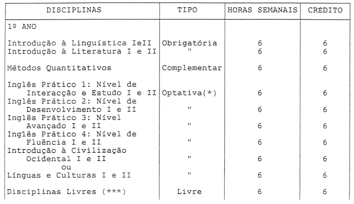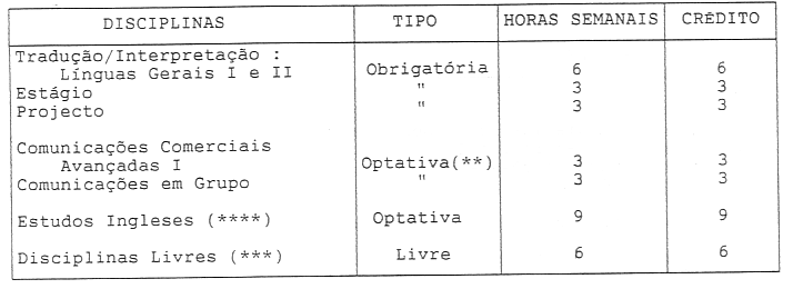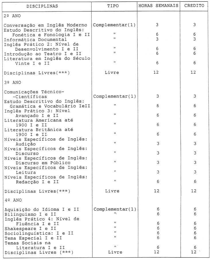 - (****) Disciplinas do curso de licenciatura em Estudos Ingleses.