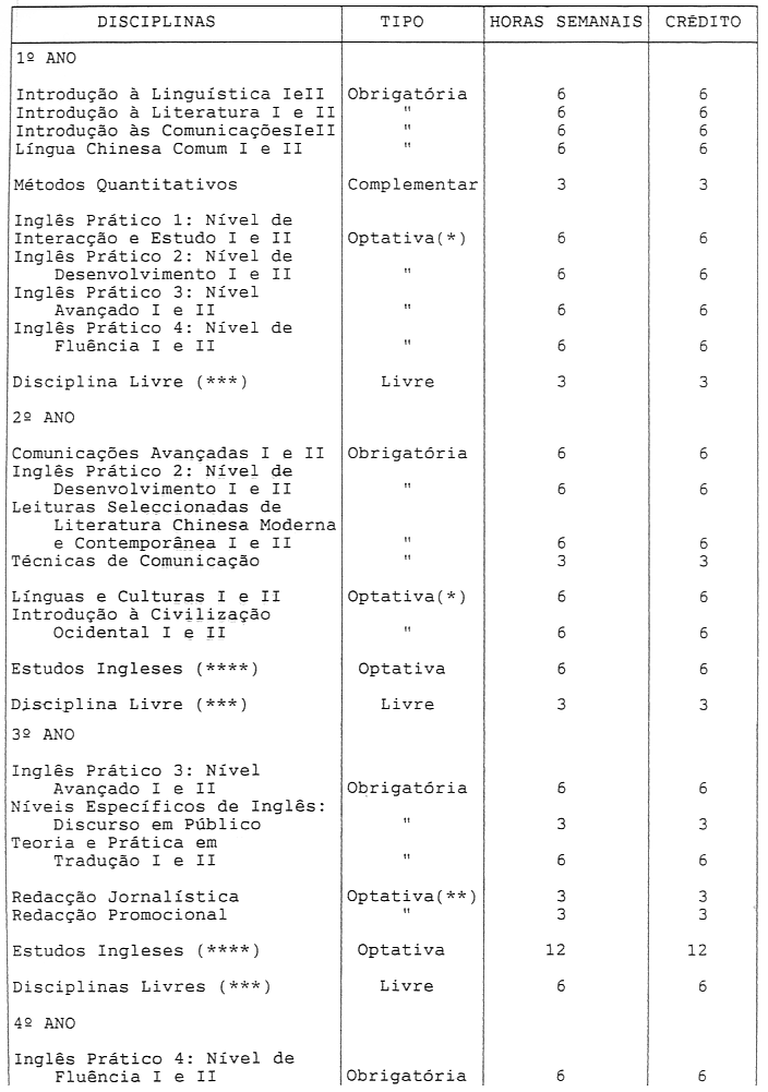 1. Licenciatura em Estudos Chineses, variante Chinês Aplicado e Comunicação em Chinês
