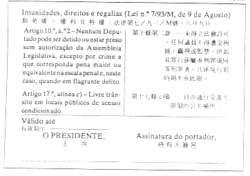 一、特別認別証除載有議員的姓名,本身及立法會主席的簽名外,應有編號,有關証件的簽發日期及單位。