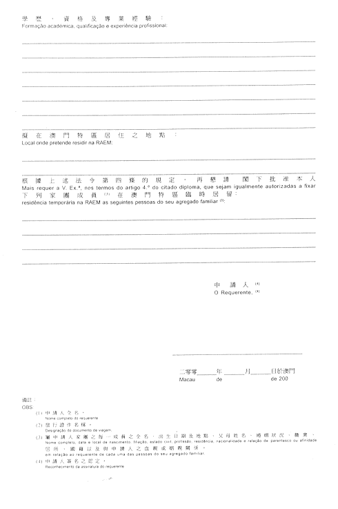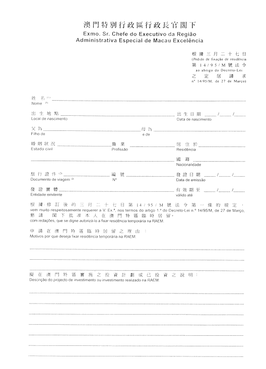 一、擬根據本法令在澳門地區定居之人,應向總督申請,為此,應填寫附於本法規之式樣之文件,並將之呈交澳門貿易投資促進局(IPIM)。