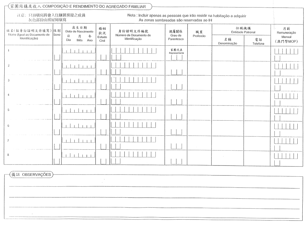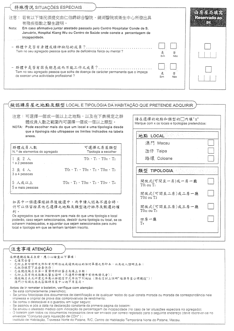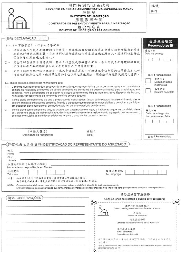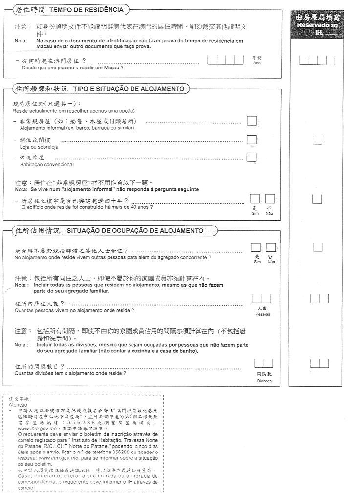 取得購買房屋群體之資格係透過在澳門房屋司(葡文縮寫為IHM)報名,並與已報名群體之競爭而為。