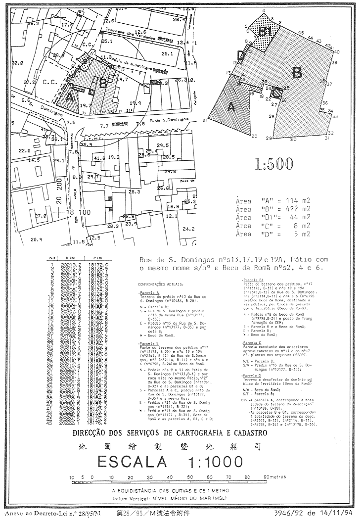 鑑於已為德香里定出都市規劃,故在適當利用德香里時,有需要將拆卸德香里二、四及六號地段之樓宇而騰出之土地與另一幅在地圖繪製暨地籍司於一九九四年十一月十四日發出之第3946/92號地籍圖內,以字母“D”標明而面積為五平方米之相鄰地 段合併,以配合德香里樓宇之正面排列。