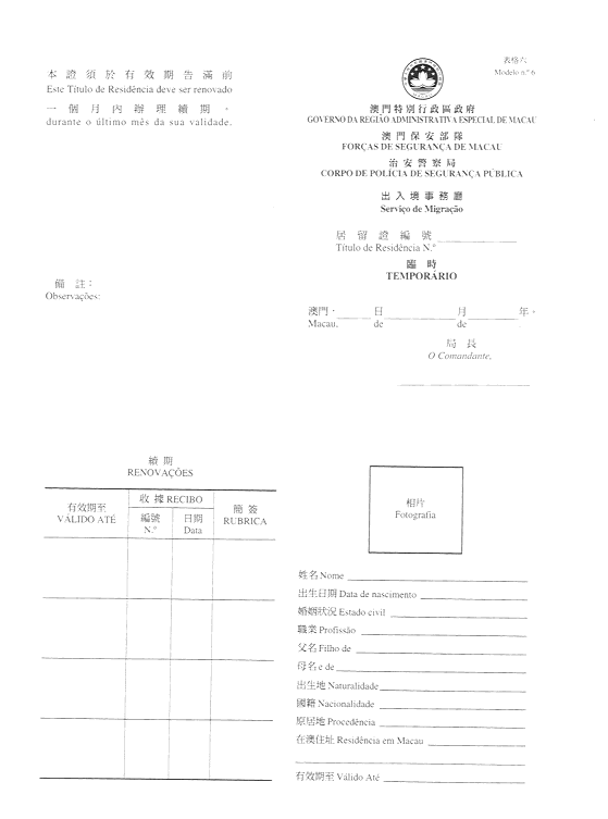 四、以臨時方式居留於澳門之人士,得獲批給回境許可,而該許可之有效期最長與其居留證之有效期相同。