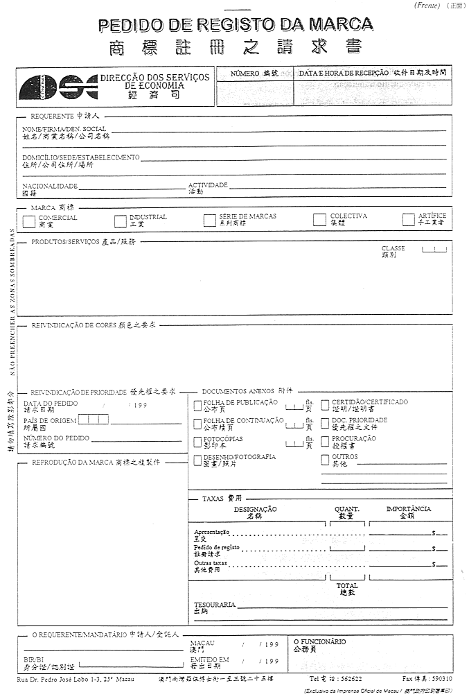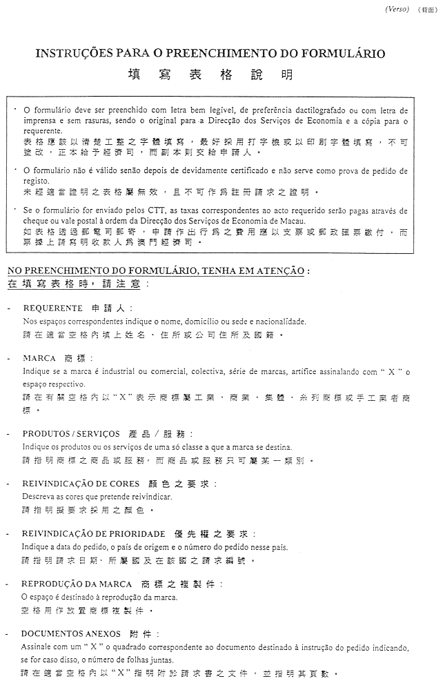 四、強制性使用葡文、中文或英文不適用於國際商標之註冊請求及未在澳門設立場所之外國公民或實體所提出之註冊請求。