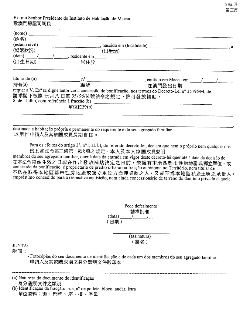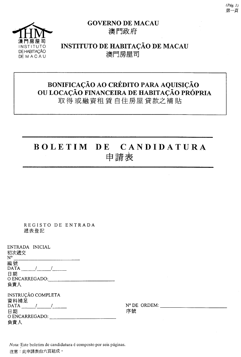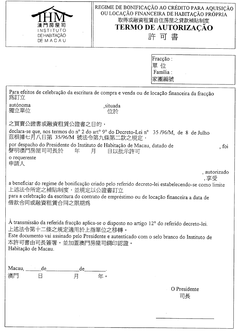 二、申請表得向澳門房屋司或信用機構索取,其式樣附於本法令內。