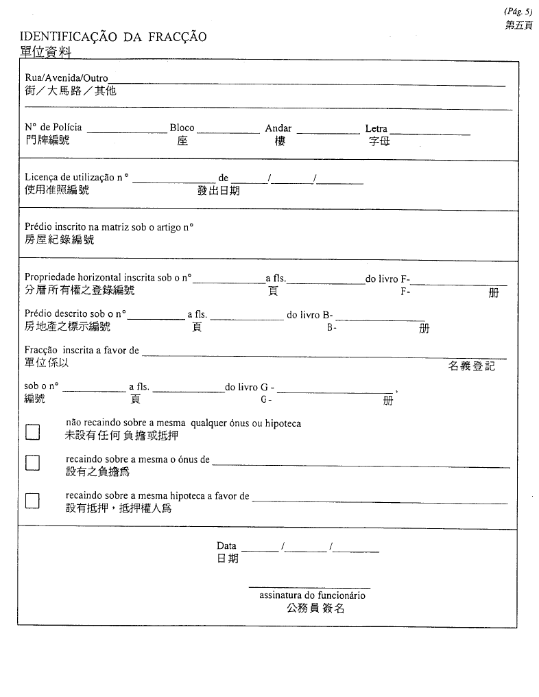 五、在買賣公證書或融資租賃公證書內必須載明該等公證書係根據本法規所定制度訂立,而在取得之登記紀錄內亦應有此相同註明。
