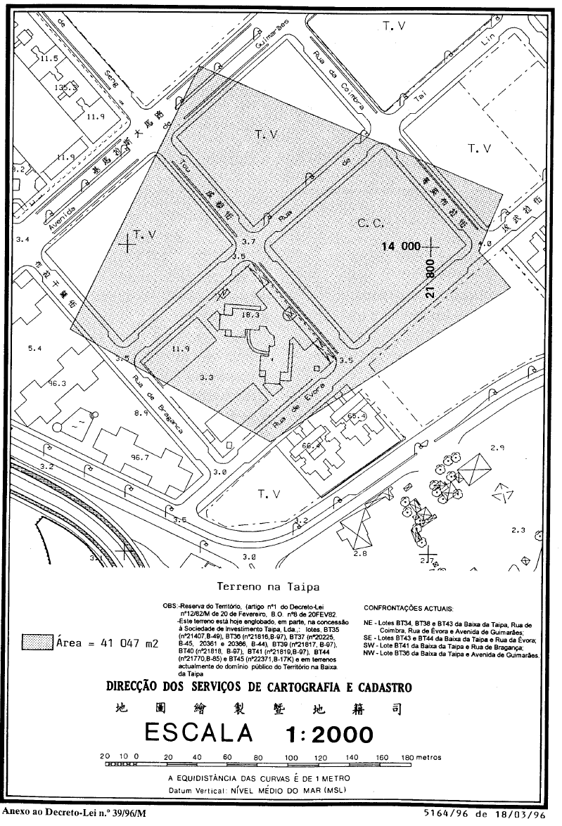 第二條 上條所指土地標明於由地圖繪製暨地籍司於一九九六年三月十八日發出之第5164/96號地籍圖內 。 該地籍圖附於本法規並成為其組成部分。