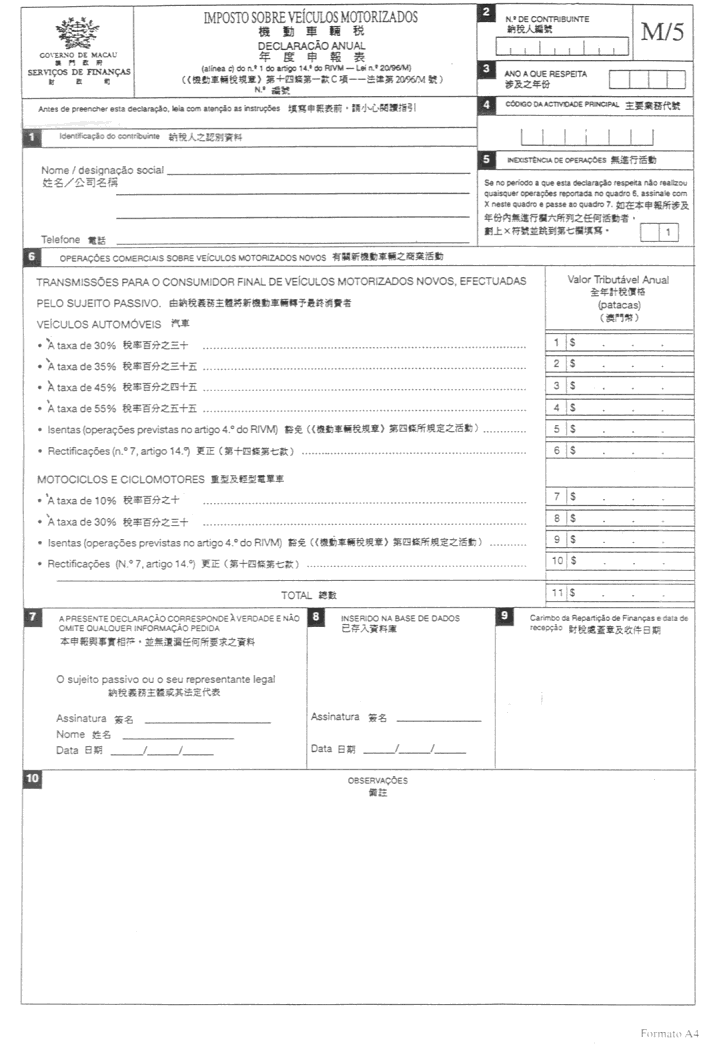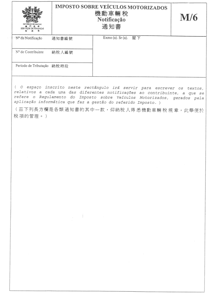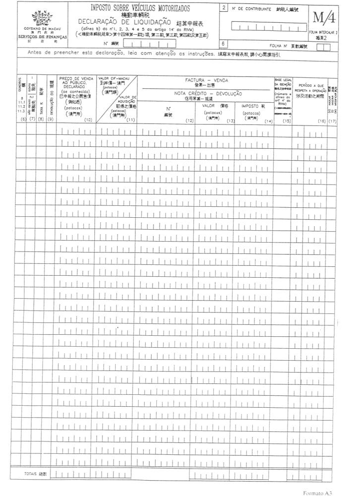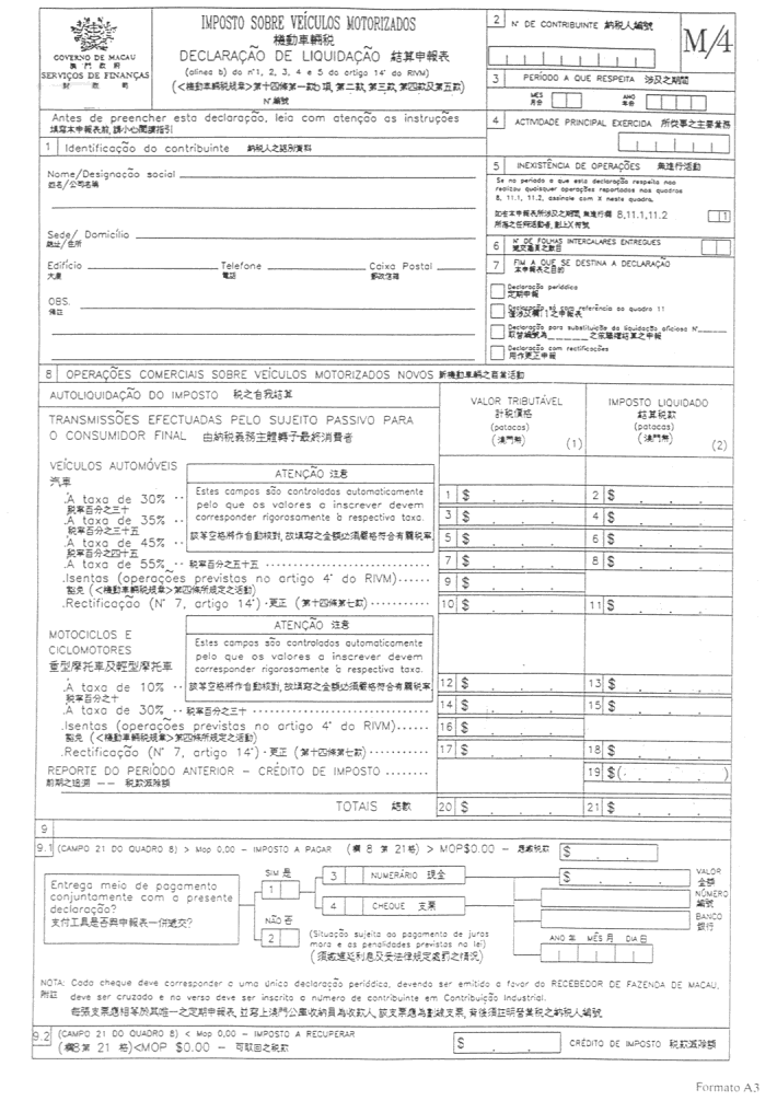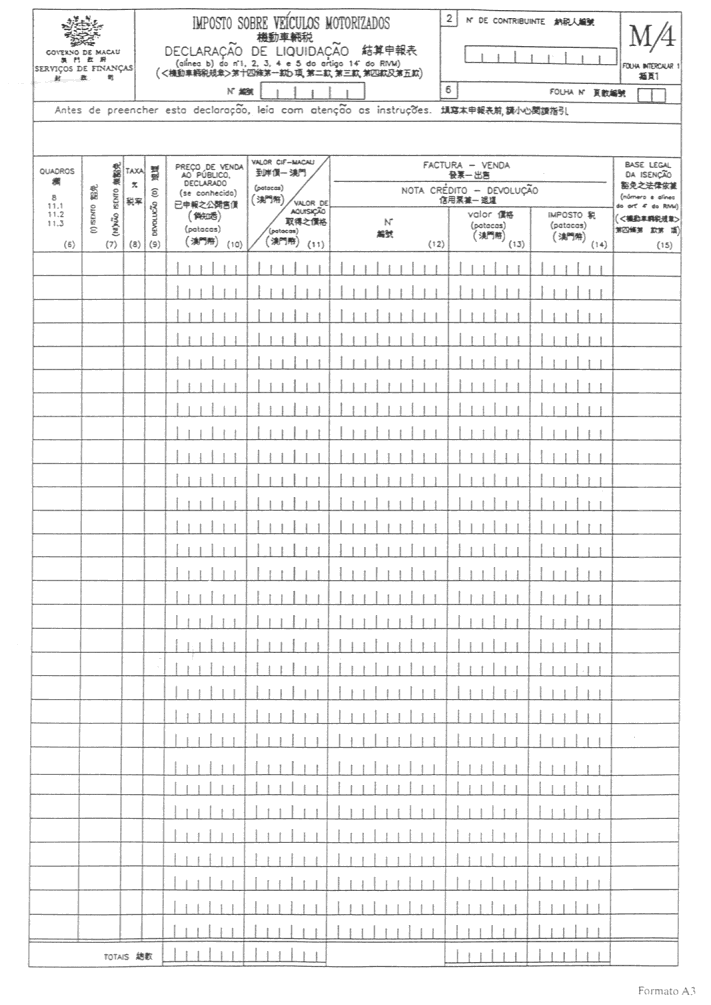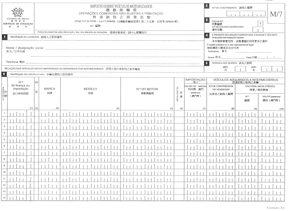 - .《機動車輛稅規章》第十四條第七款所指之載有更正或其他事項之申報表(亦需填寫M/4格式申報表——插頁2)。