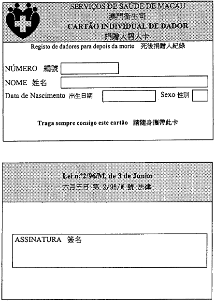 (Cartão individual de dador)