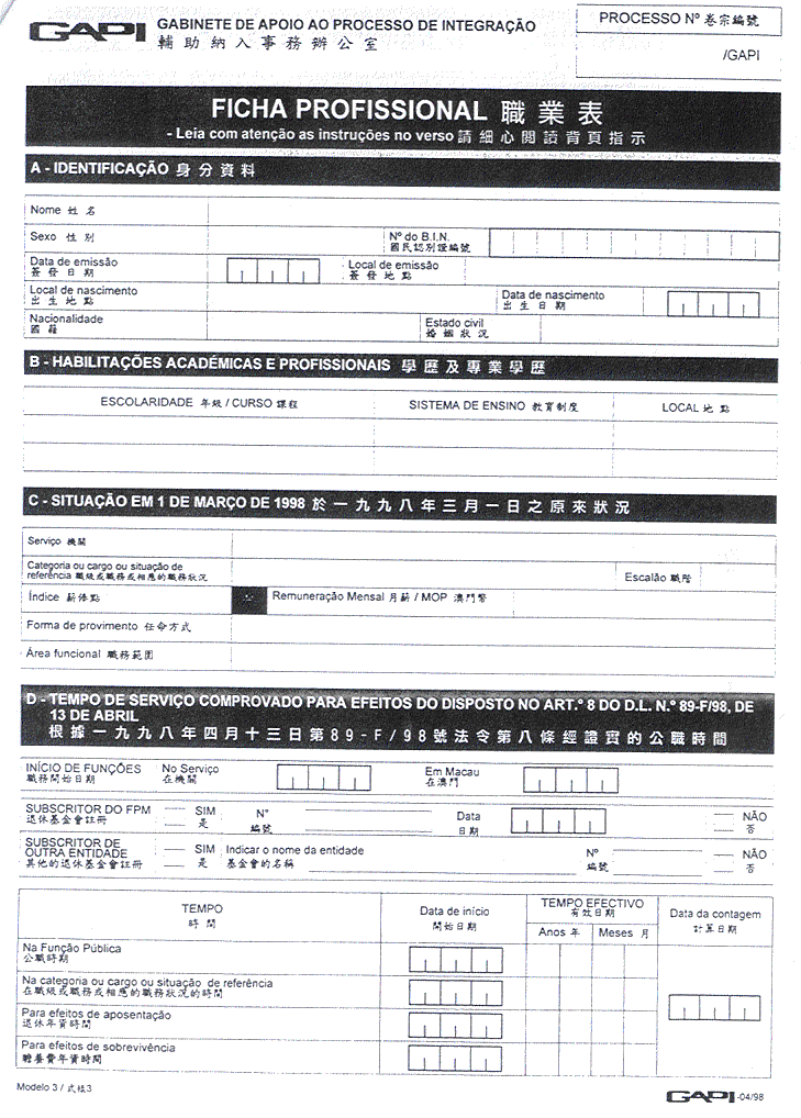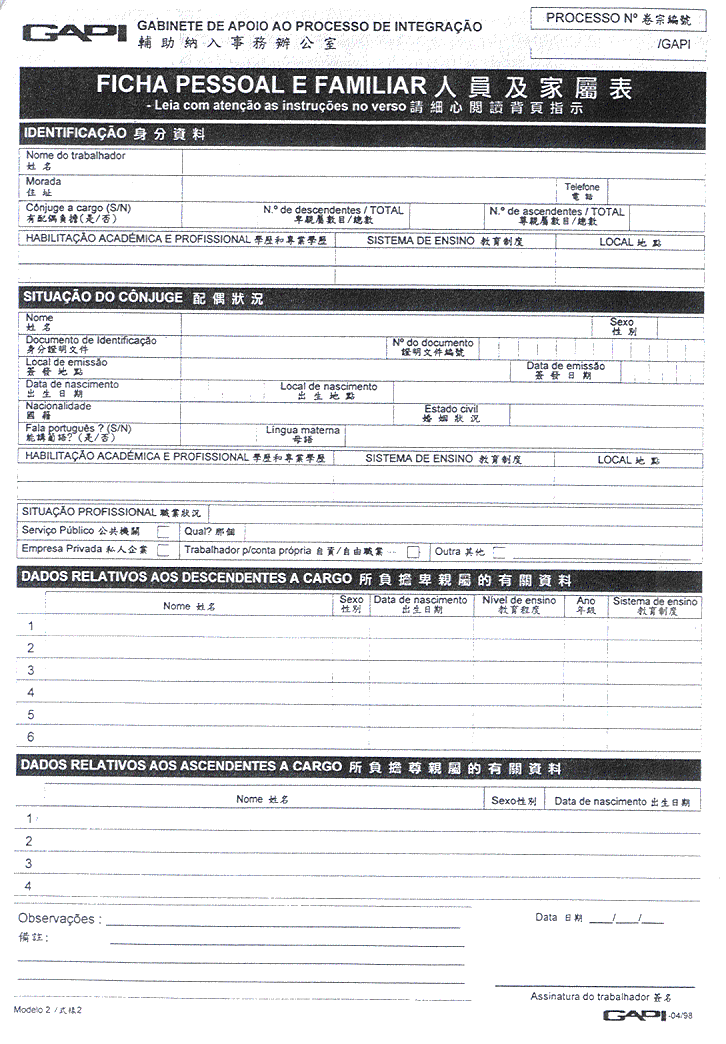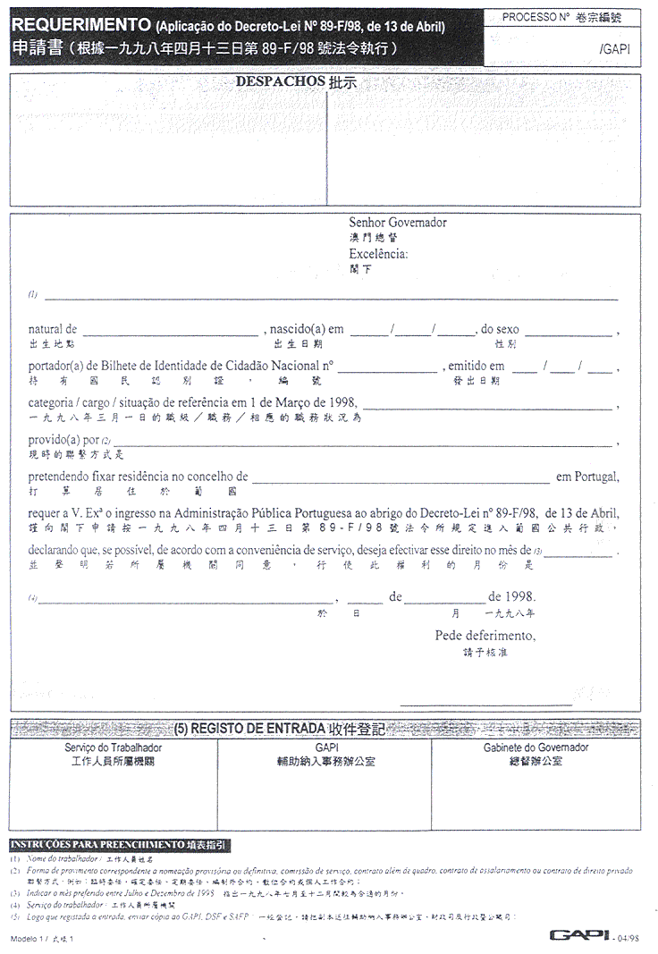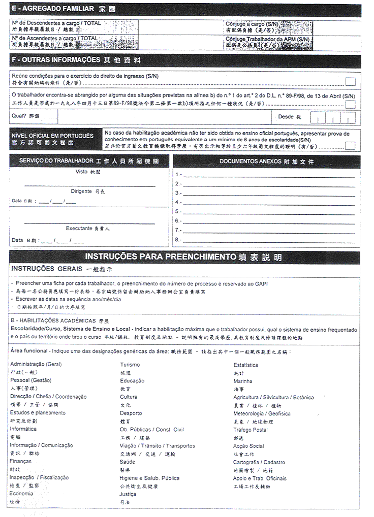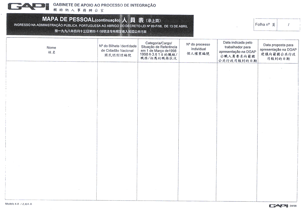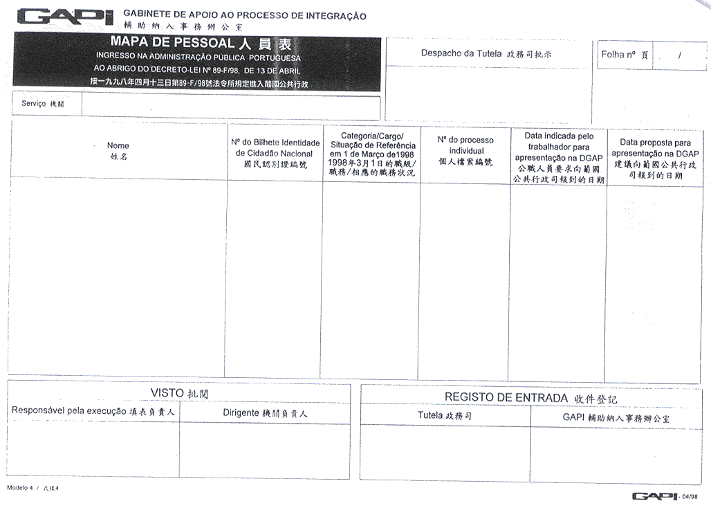 核准附於本批示之關於入職申請書、人員及親屬資料表、職業資料表、人員表及報到憑單等印件式樣,而印製該等印件屬澳門政府印刷署專職。