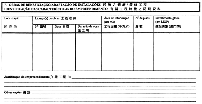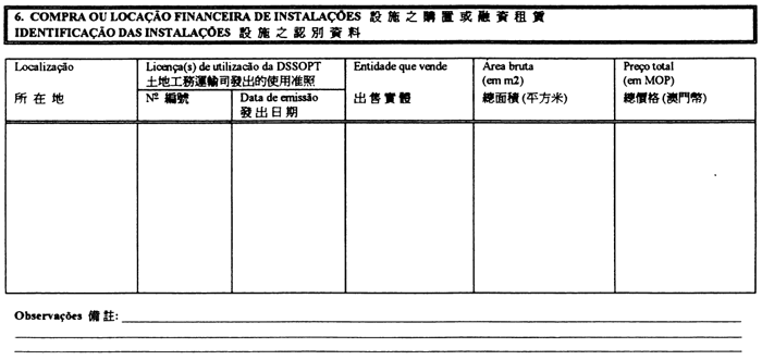 6 屬批地合同的情況,只須在工程特徵之備註一欄內,指明公布批地批示的《政府公報》編號。
