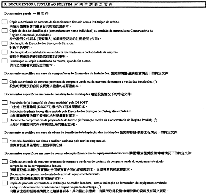9. 附同申請表之文件