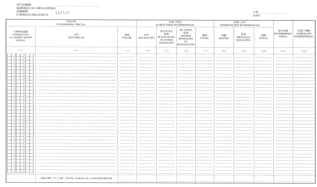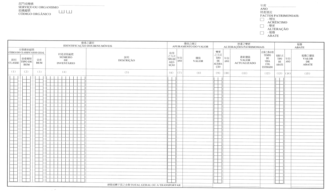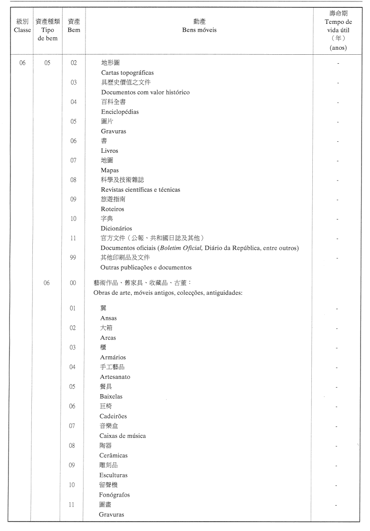 十一月三十日第57/98/M號法令第五條第二款規定,本地區動產之分類總表、紀錄及財產清冊表式樣以及財產帳目式樣,由總督以批示核准,並刊登澳門《政府公報》。