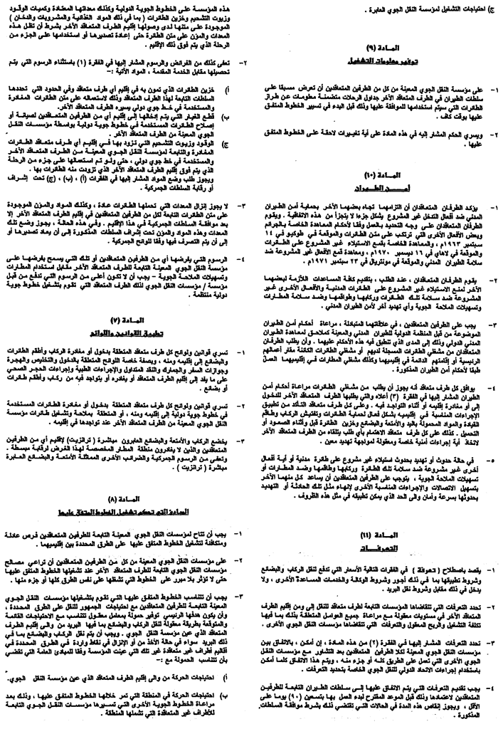 一、締約雙方重申,彼此之間對保障民航安全免受非法行為干擾的責任構成本協定不可缺少的一個部分。締約雙方應特別遵守一九六三年九月十四日在東京簽訂的關於在航空器內犯罪和犯有某些其它行為的公約,一九七零年十二月十六日在海牙簽訂的關於制止非法劫持航空器的公約,以及一九七一年九月二十三日在蒙特利爾簽訂的關於制止危害民用航空安全的非法行為的公約的規定。