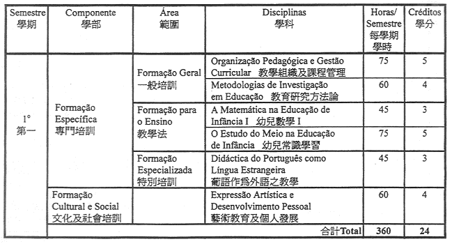 第一條——在澳門大學教育學院設立頒授學士學位的幼稚園教師葡語專業學術及教學補充培訓課程。