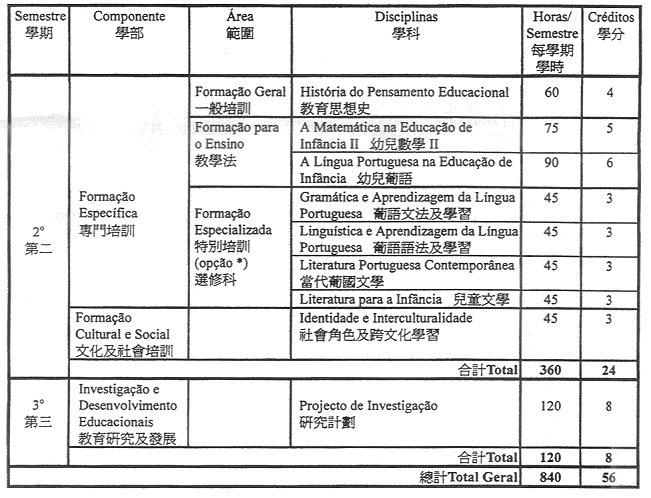 幼稚園教師葡語專業學術及教學補充培訓課程學習計劃