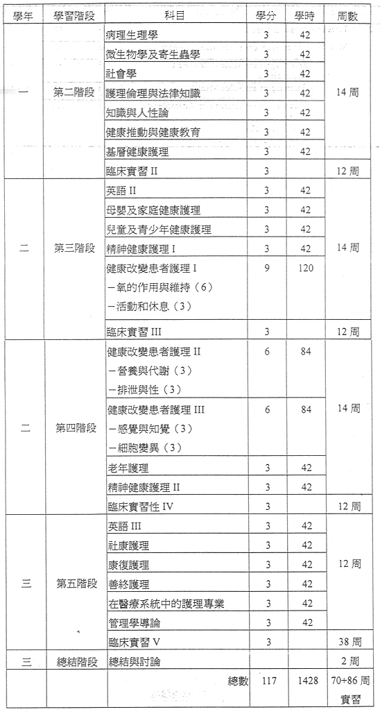 高等護理專科課程
