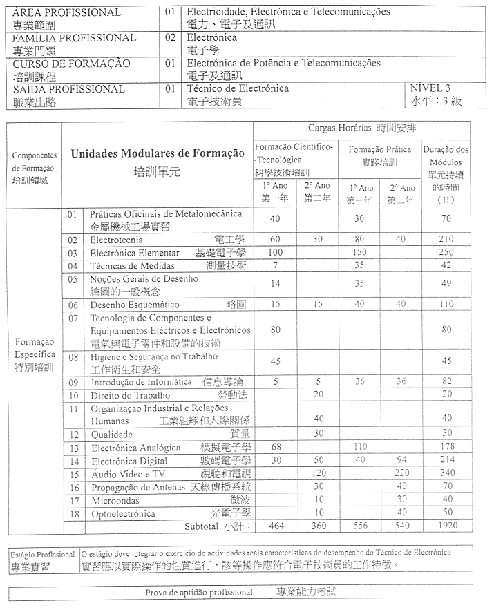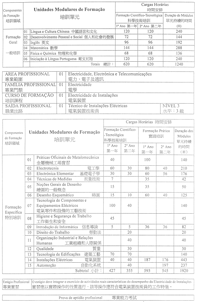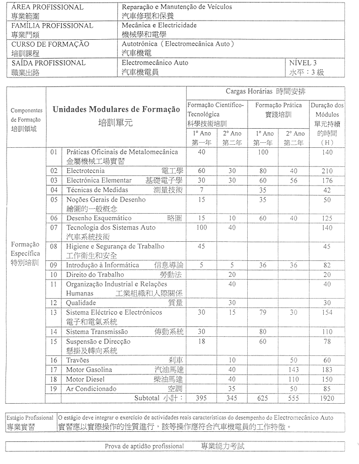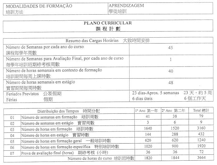 執行制定學徒培訓法律制度的九月十六日第52/96/M號法令,必須回應本地區生產系統科技發展的需要,設立職業培訓課程,以提升人力資源的價值。