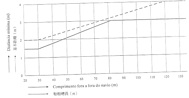 操舵羅經應遵守之距離得比下圖規定值少65%,但不得少於1m。如僅備有一個操舵羅經,應採用標準羅經所遵守之距離。