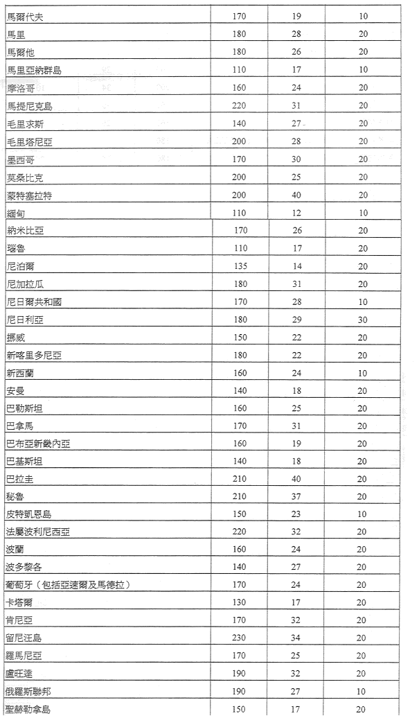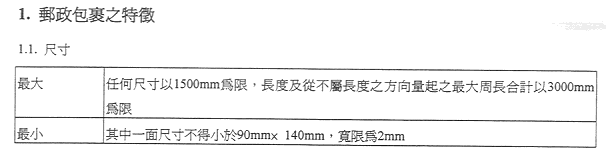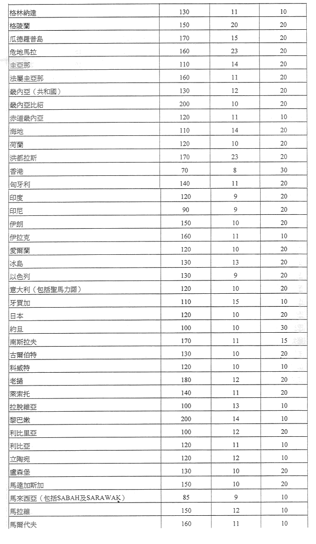郵政服務收費及罰款總表