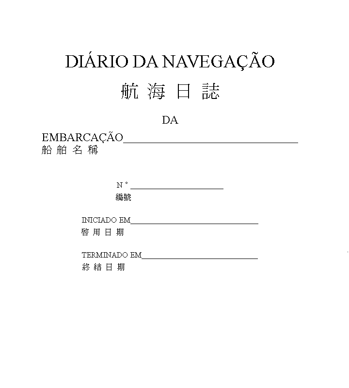 第二條──航海日誌係一由二百張尺寸為A4之正面經印刷、背面空白之紙組成之簿冊。
