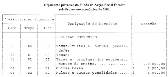Orçamento privativo do Fundo de Acção Social Escolar, relativo ao ano económico de 2000