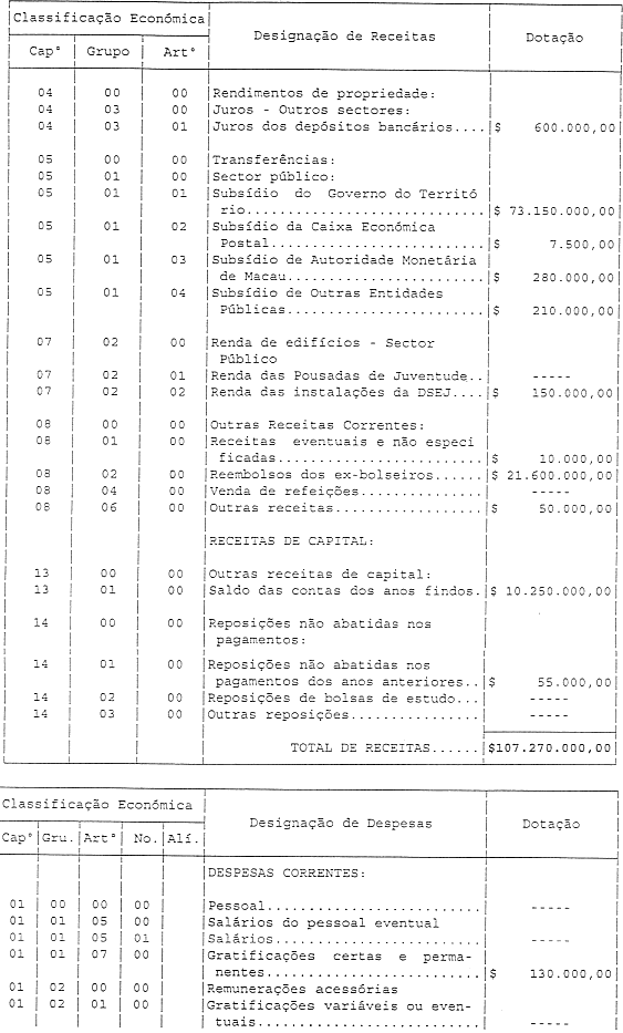 • Aprova e põe em execução o orçamento privativo da Universidade de Macau, relativo ao ano económico de 2000.