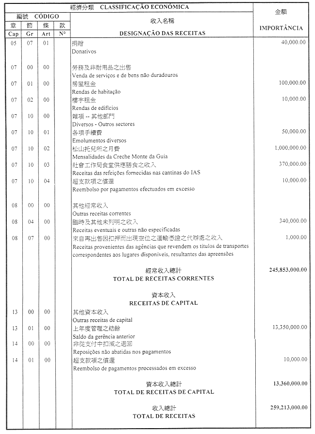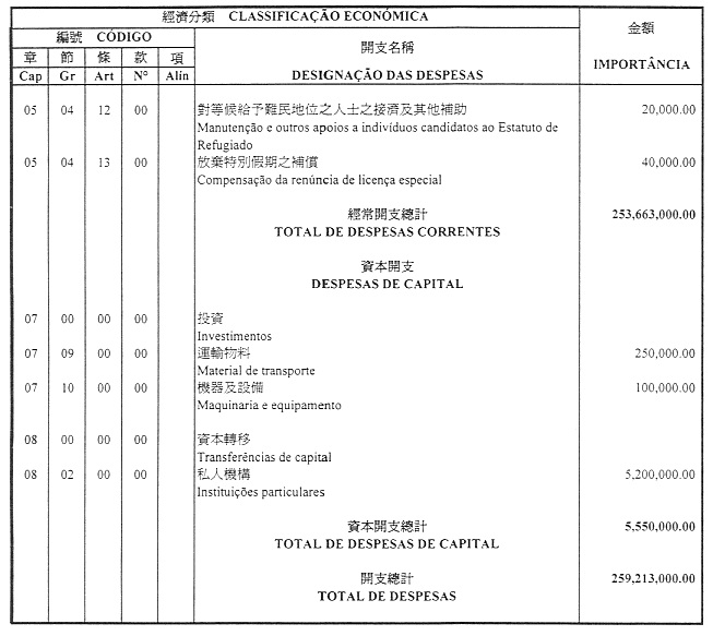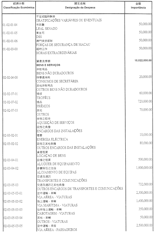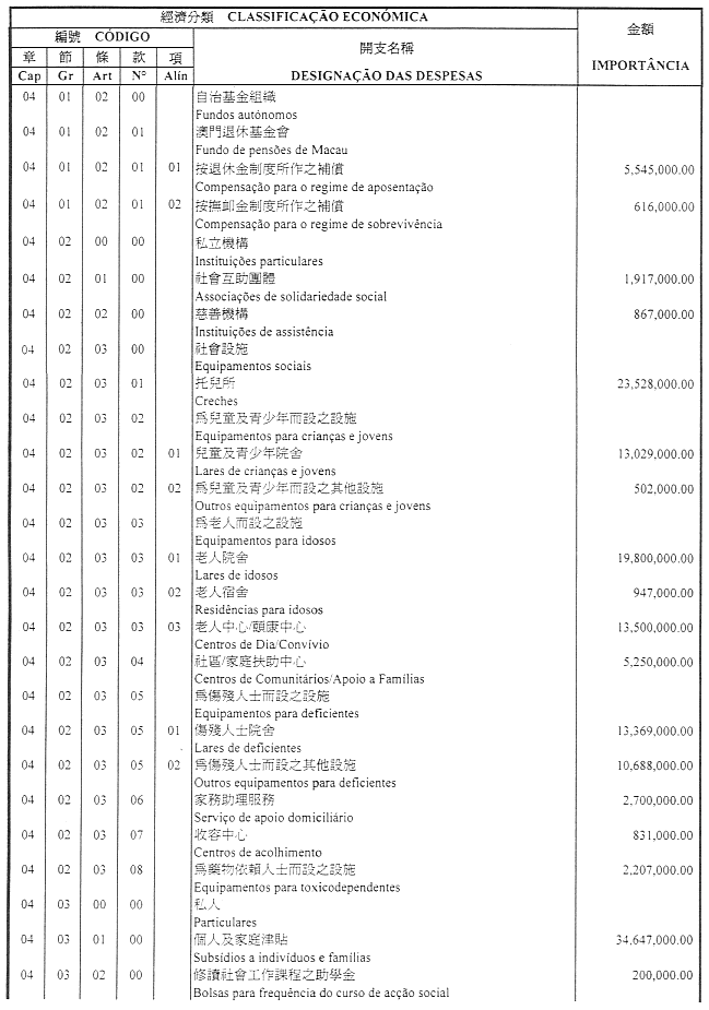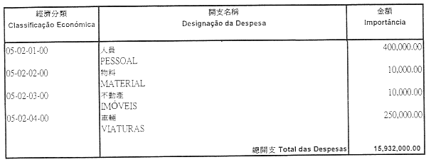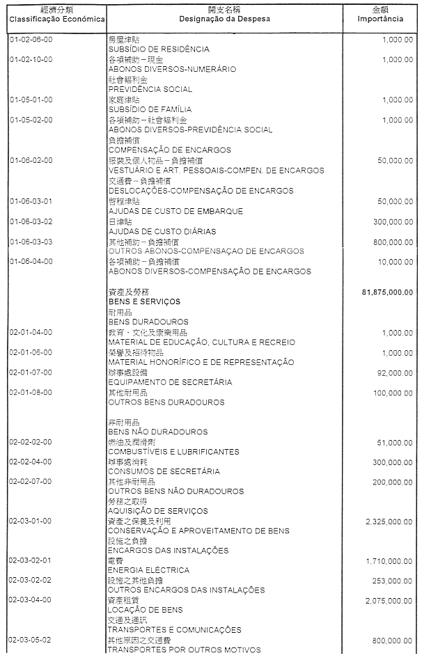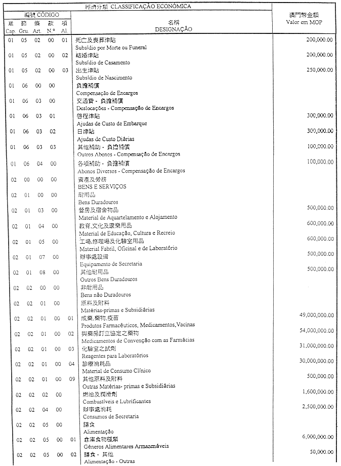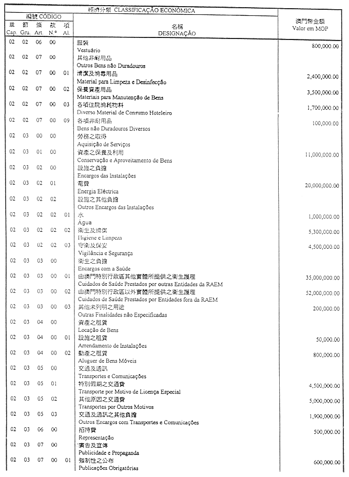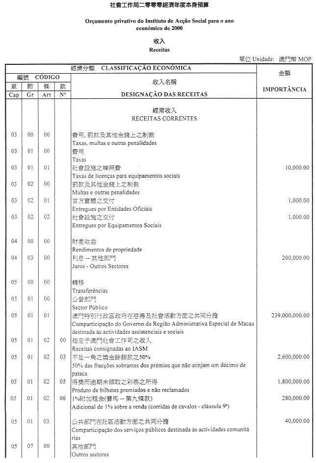 核准社會工作局二零零零年財政年度之本身預算,並於二零零零年一月一日起開始執行,預計收入及開支之金額均為澳門幣259,213,000.00(貳億伍仟玖佰貳拾壹萬叁仟元正),該預算為本批示之組成部份。