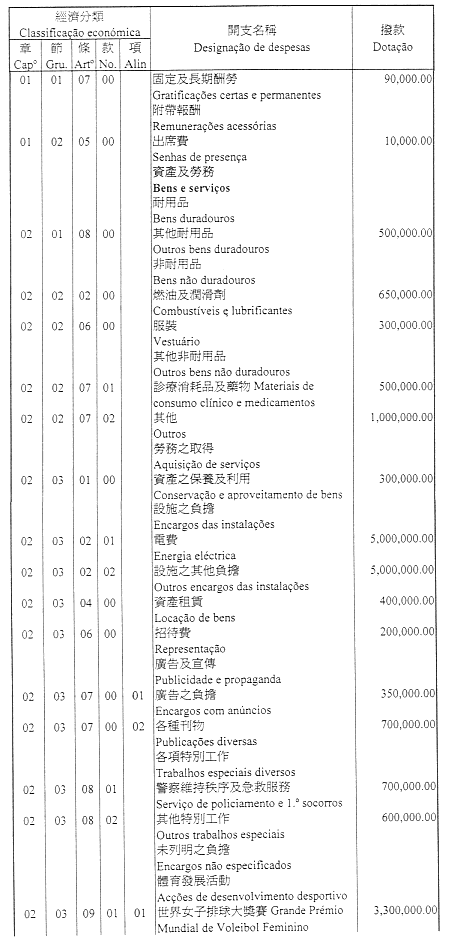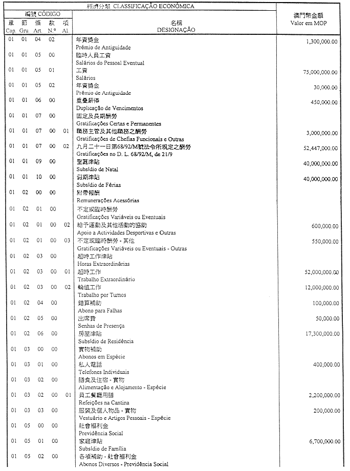 根據九月二十七日第53/93/M號法令第三十三條之規定,下列獨立預算公佈於附件: