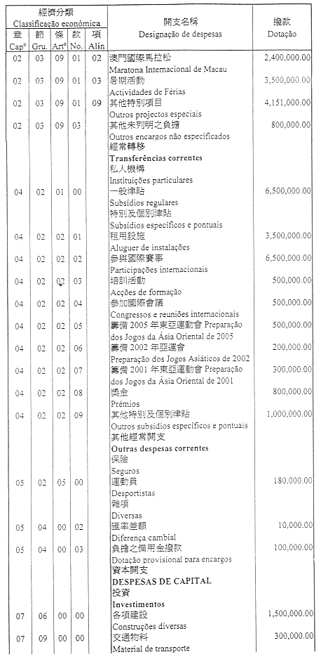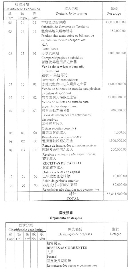 核准體育發展基金二零零零年財政年度之本身預算,並於二零零零年一月一日起開始執行,預計收入及開支之金額均為澳門幣53,841,000.00(伍仟叁佰捌拾肆萬壹仟元正),該預算為本批示之組成部分。