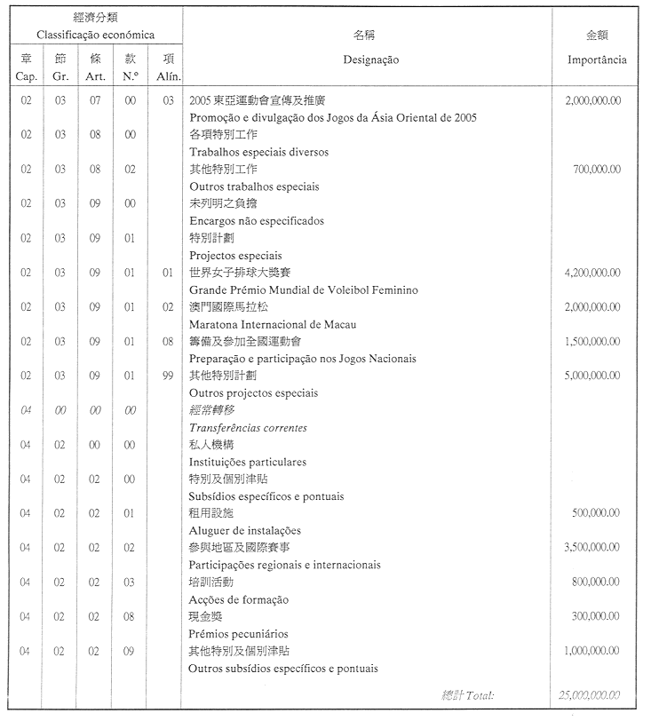 三、2002年之負擔將由登錄於該年度澳門特別行政區財政預算之相應撥款支付。