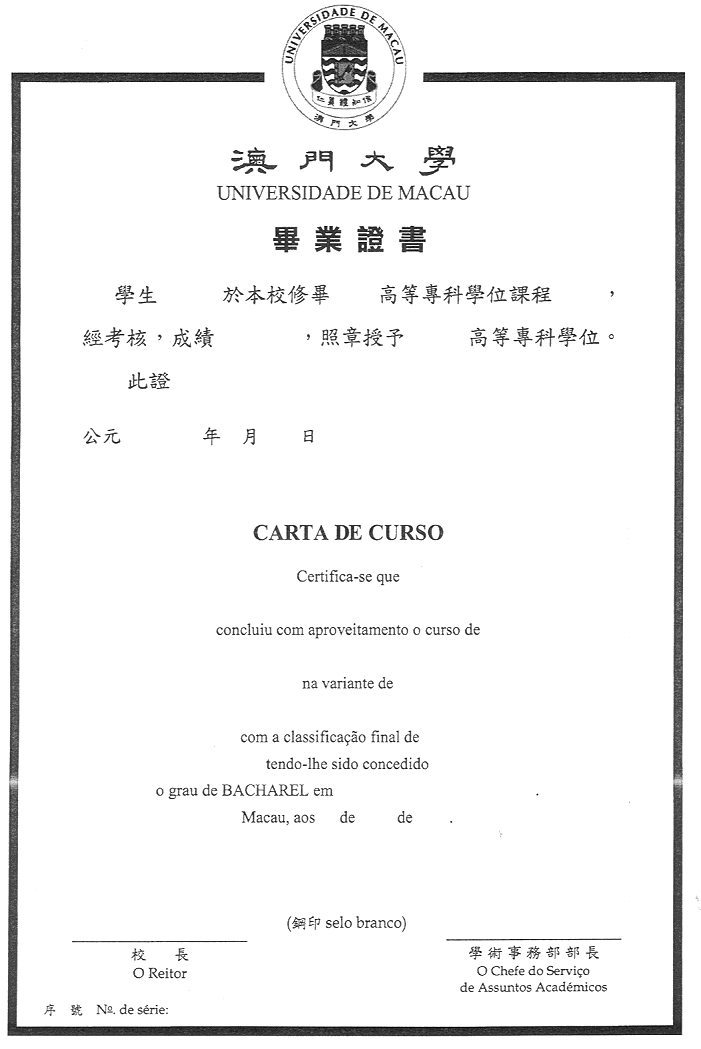 一、核准載於本批示附件內並作為批示組成部分之高等專科學位課程畢業證書之新式樣,而該等證書由印務局專責印製。