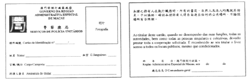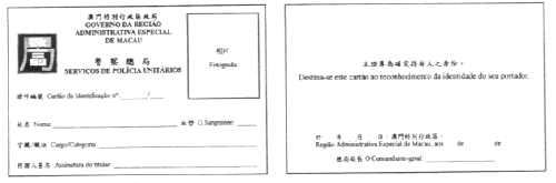 二、式樣一證件為警察總局局長專用,式樣二證件供具有刑事警察當局身份的警察總局人員使用,式樣三證件供警察總局軍事化及調查人員使用,而式樣四證件則供其餘的警察總局人員使用。