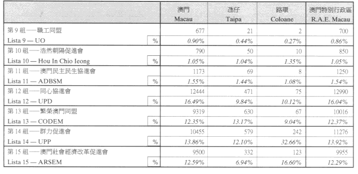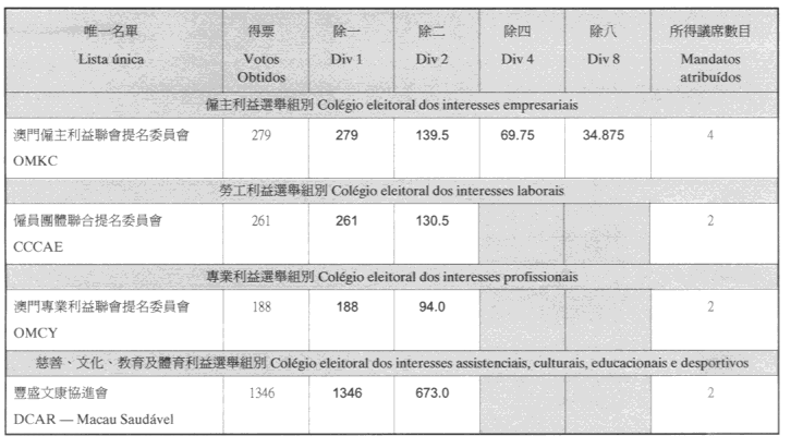 澳門特別行政區立法會議員的直接選舉和間接選舉結果