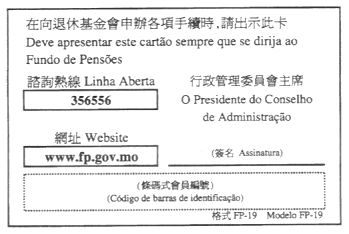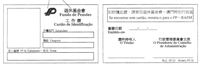 二、工作證為白色,尺寸為86毫米x54毫米,當中印有退休基金會之標誌。
