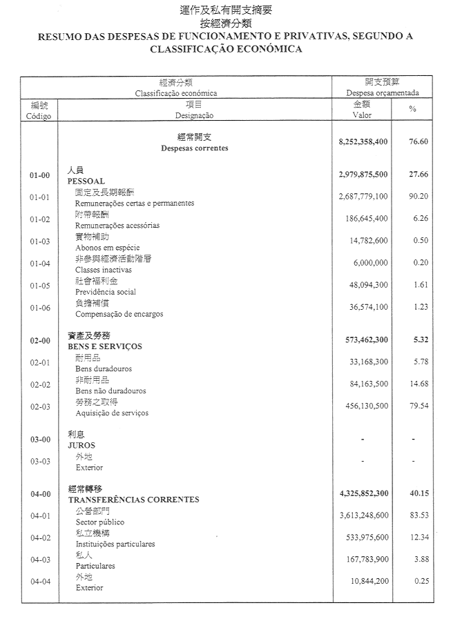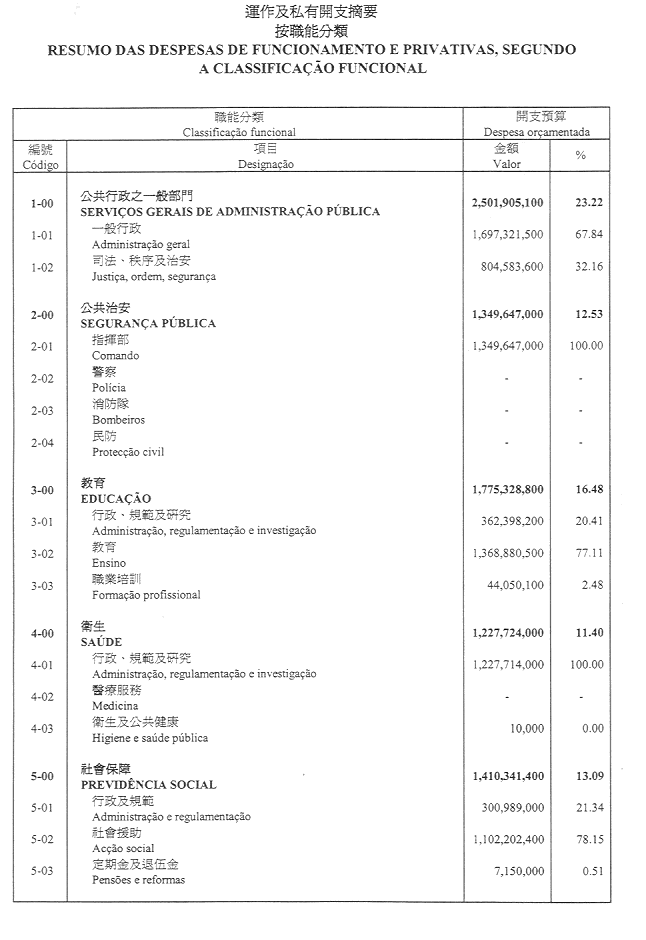 (一)控制各機關之運作開支之增長,使其穩定在因薪酬演變而達至的水平,並使之配合公共收入之發展情況;