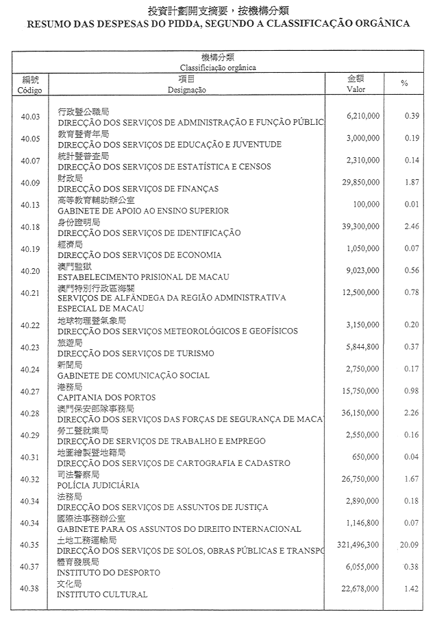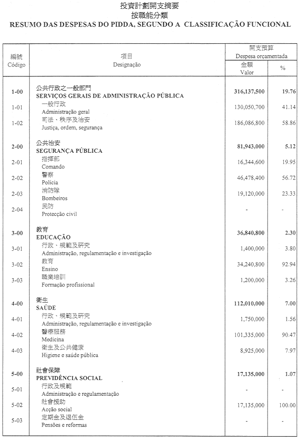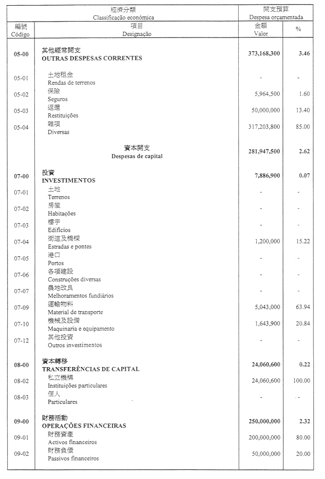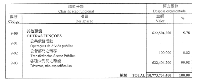 一、使用與整體款項有關之資金,須在聽取財政局意見後按經濟及職能分類之適當項目預先分配。