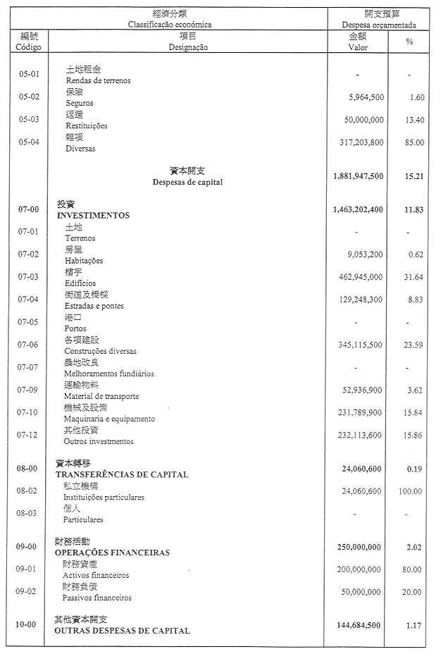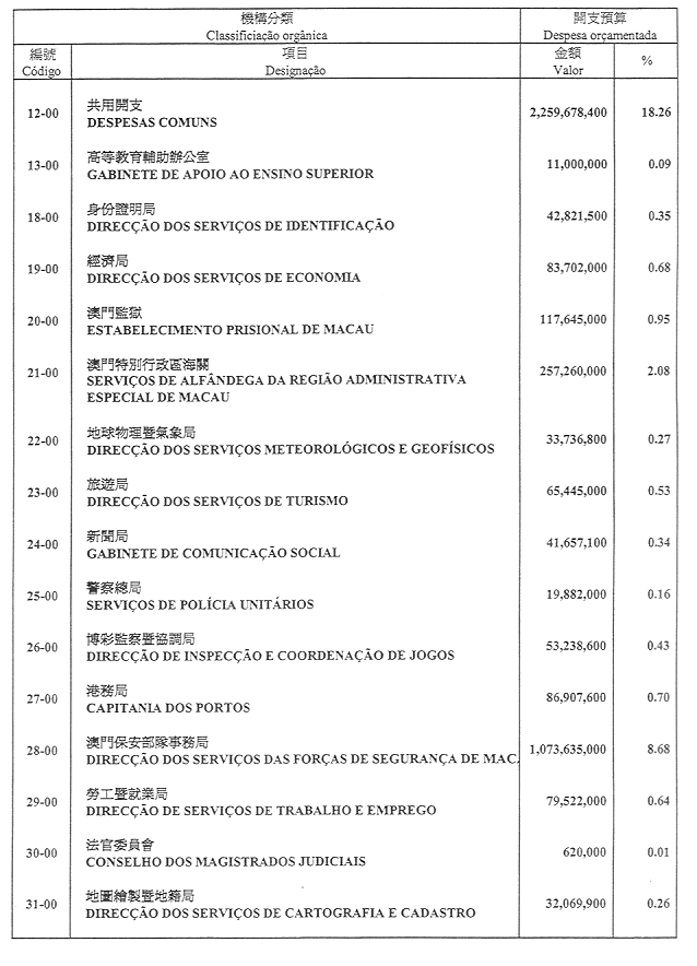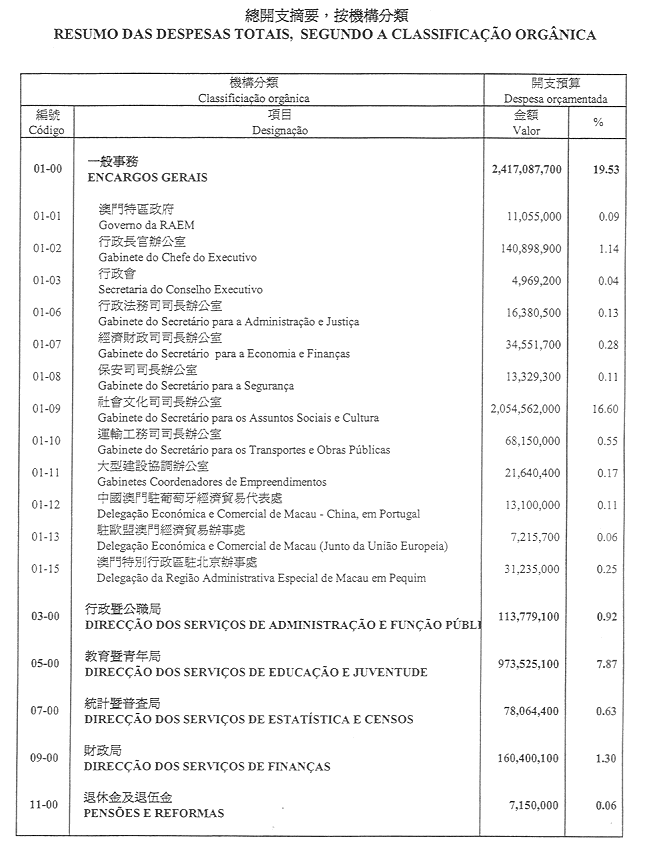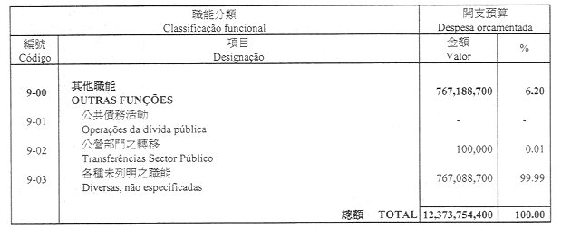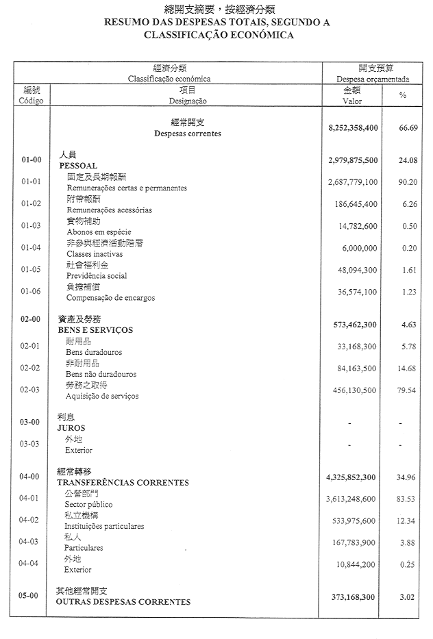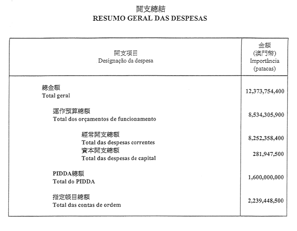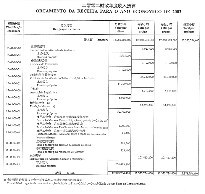 二零零二財政年度之財政預算開支總額定為澳門幣 12,373,754,400.00圓。
