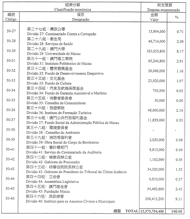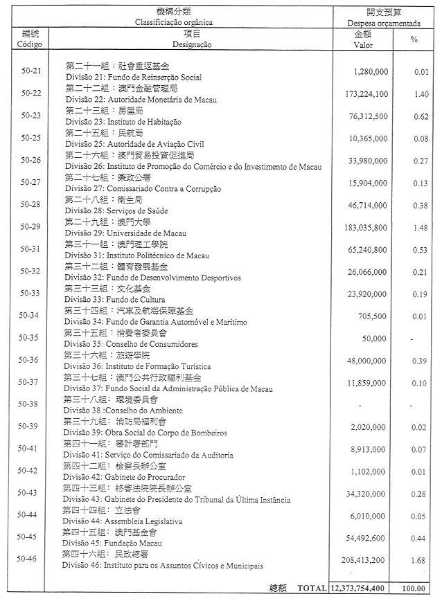 一、二零零二年澳門特別行政區財政預算內未予規範之公共實體,在其財政預算經行政長官核准後,亦獲准運用本身收入以支付法律所許可且登錄在每一本身預算內之開支。