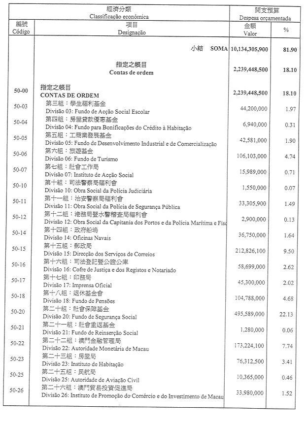 一、二零零二年澳門特別行政區財政預算係按照關於財政預算及公共帳目之法規而編製,並已顧及各自治實體財政制度之專有情況。