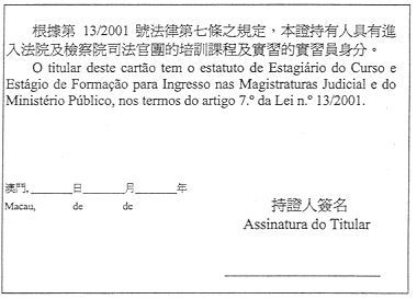 三、該等工作證由法律及司法培訓中心發出,並由該中心主任簽署。